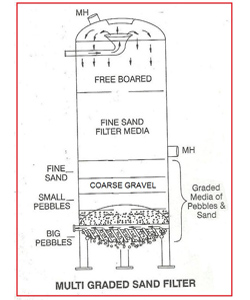- Raw Water is passed through filter media Impurities in the water are trapped in the media bed Backwashing for removal of deposited impurities from the media bed Rinsing with raw water.